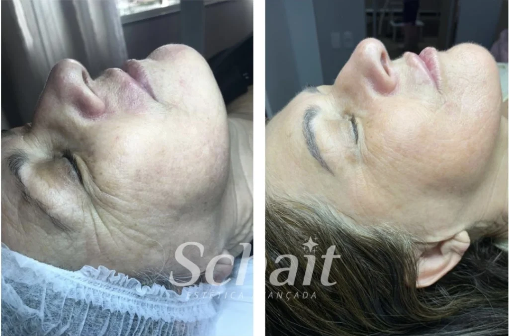 Essa é a Neuza, sua principal queixa era flacidez e linhas de expressões. A Neuza é mãe, dona de casa e atualmente cuida dos netos. Com toda essa rotina, a Neuza nunca teve um tempo para se cuidar. Quando ela chegou na clínica, ela relatou que não se reconhecia ao se olhar no espelho e que um dia, quando foi fazer uma maquiagem para tirar fotos com seus filhos, percebeu o quanto o tempo tinha passado e ela havia se deixado totalmente de lado, apenas cuidados de todos, menos dela. Após minuciosa avaliação, tracei um plano de tratamento mais adequado a seus hábitos e necessidades e, após 6 sessões do Método Pele de Rainha, alcançamos esse resultado surpreendente!
