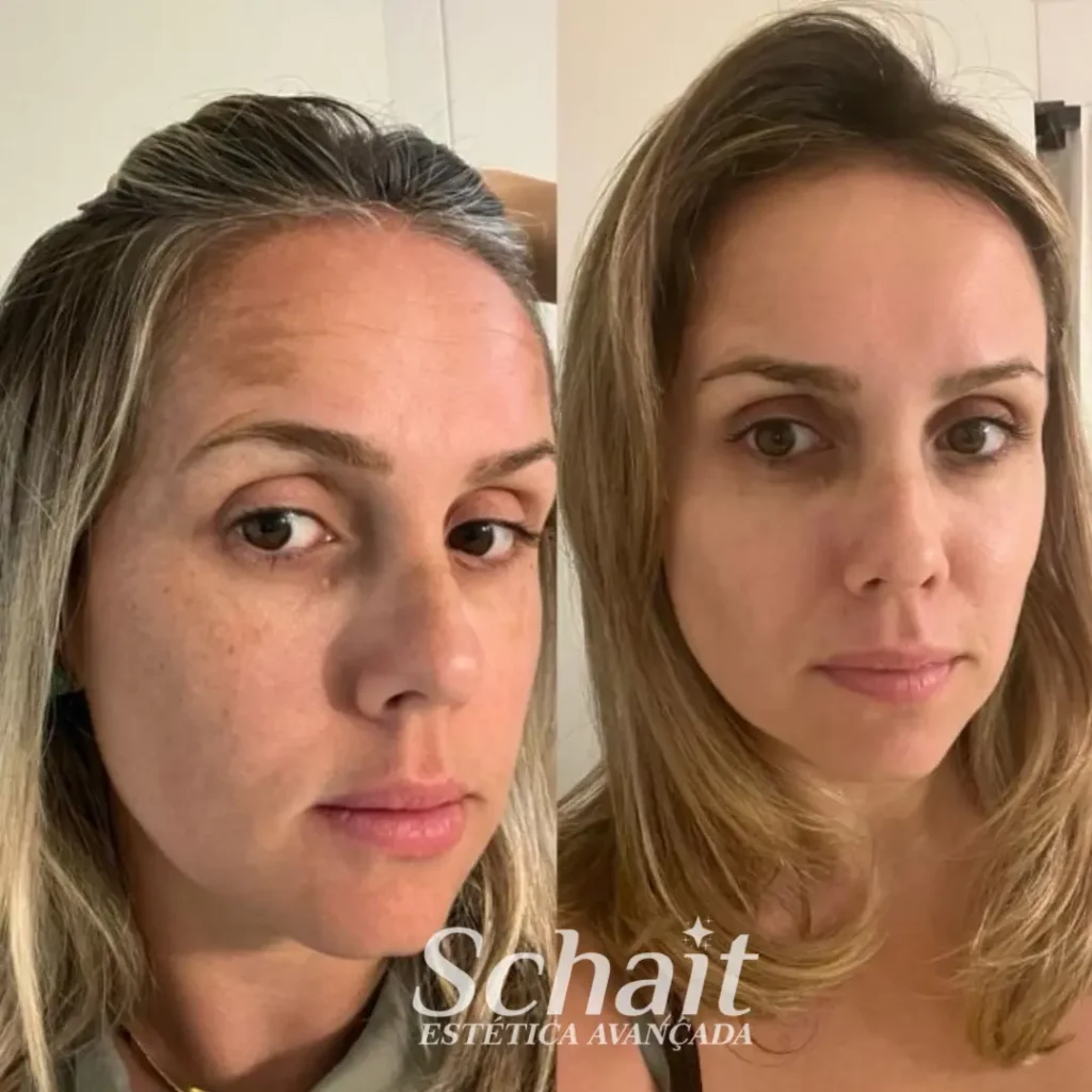 Essa é a Tathy, ela é empresária, esposa e mãe, sempre manteve o cuidado com sua pele, pois ela compreende a necessidade do autocuidado diário e mesmo assim, a sua principal queixa eram as manchas em seu rosto. Após passar por vários profissionais e procedimentos, sempre buscando a melhora das manchas (melasma), como não obteve resultado, ela ouviu falar do Pele de Rainha e veio conhecer melhor sobre o tratamento. Após a avaliação e realizarmos apenas 4 sessões, esse foi o resultado alcançado mesmo antes do término do tratamento completo!